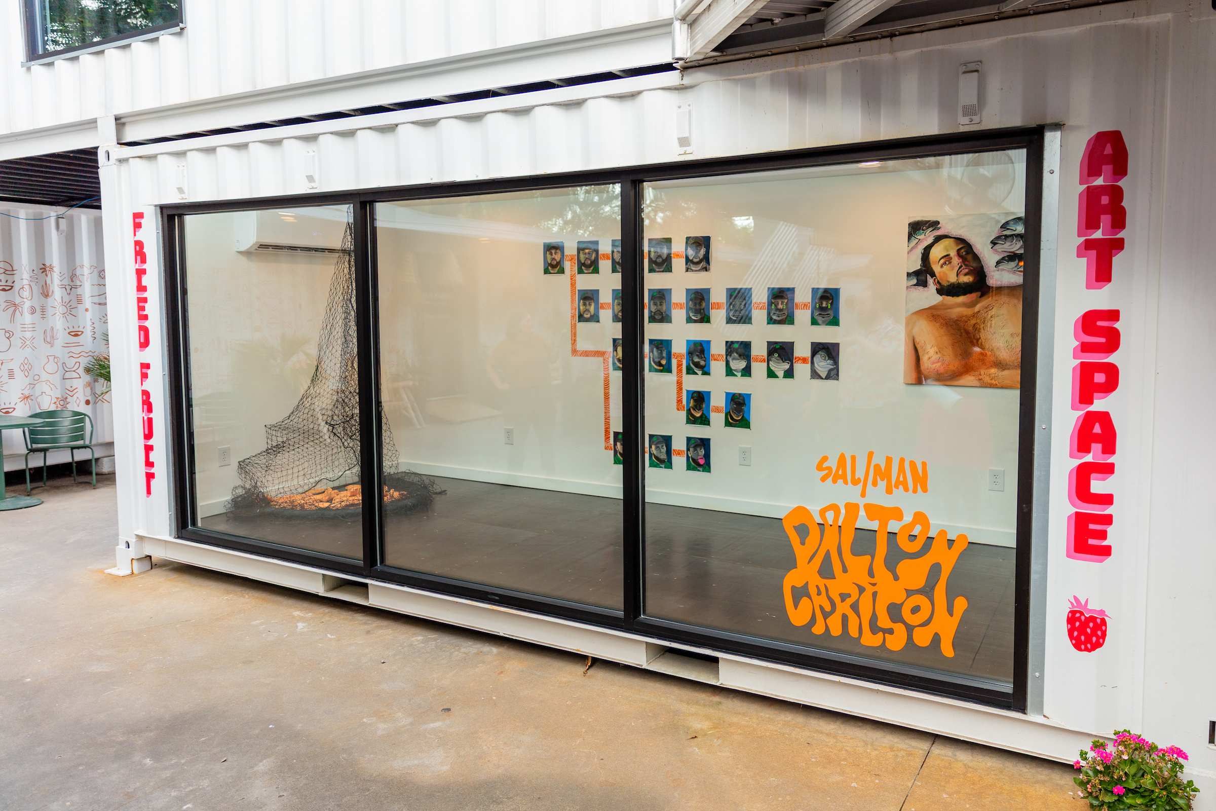 The gallery’s distinctive name traces back to Creech’s earlier collaborative project in DeLand, Fla., where she transformed the window of a working mechanic shop into an outdoor exhibit during the COVID-19 pandemic, providing one of the few active exhibitions for the public to view at the time. The term “fruit” was inspired by the citrus orchard on the Florida property Creech rented, while “fried” is a nod to Will Fryar, the first person in Wilmington to allow Creech to use his studio for an art exhibition.