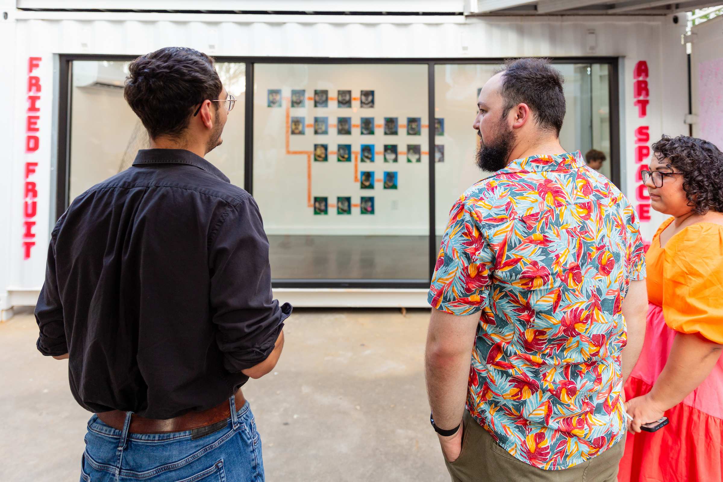 Located in Wilmington’s Cargo District, nestled among small but growing businesses on Queen Street, is a retired cargo container that houses one of the city’s most distinctive creative venues. The Fried Fruit Art Space, founded in 2021 by Assistant Professor Madison Creech of UNC Wilmington’s Department of Art and Art History, serves as a bridge between the university and the local arts community while offering students hands-on experience in curating, exhibiting and promoting contemporary work.