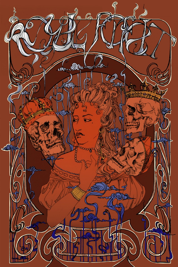 Before my room was converted to a personal workspace, the walls were covered salon style with art wall to wall: spreads from outdated calendars, illustrations clipped from thrifted books, saved packaging with charming illustrations. My little gallery was a reflection of what I found engaging and endearing; in turn my senior exhibit work follows the same theme. I take huge inspiration from art history. I am particularly attracted to art movements that embrace romantic depictions of the beauty of nature, decadence, and the human form, such as the Pre-Raphaelite Brotherhood and Art Nouveau. Deriving compositional and subject choices from the movements, I then look to the Golden Age of Illustration, Psychedelic Art Nouveau Revival, and many contemporary designers for stylistic elements to incorporate.
