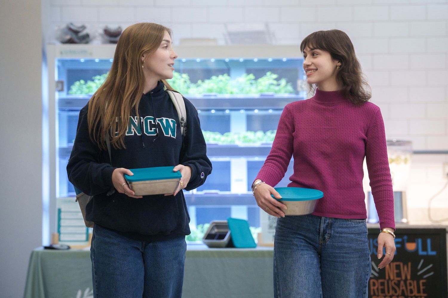 - Check out a container and enjoy your meal to go!